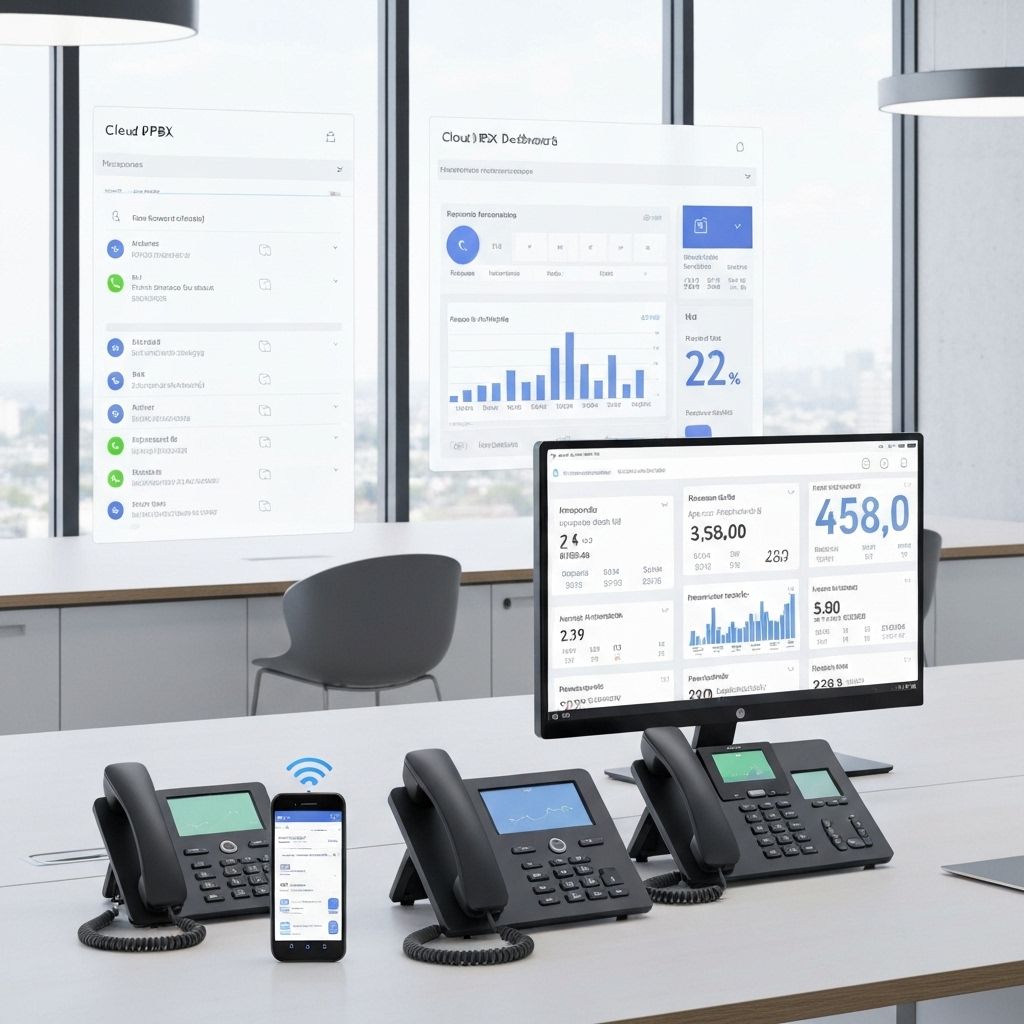 Modern cloud-based phone system with advanced features like auto-attendant, call forwarding, and voicemail-to-email.